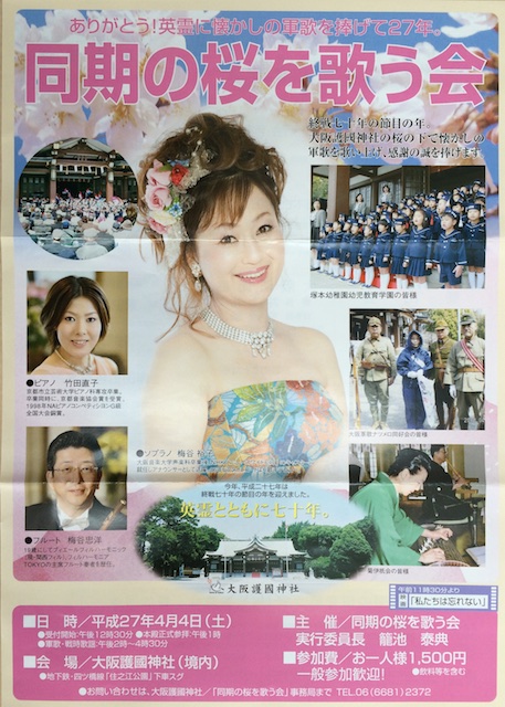 かつらぎ町の築野食品には、この名の事務局が置かれており、そこから数日前に封書が届いた。殉難者法務死とはいったい何だろう。封筒を開けると、返信用のはがきとともに3つ折りにされた2つの文書が出てきた。1枚は年次法要の案内、返信用のはがきは、年次法要への出欠席の返事を求めるもの、もう1枚は「同期の桜を歌う会」の案内チラシだった。