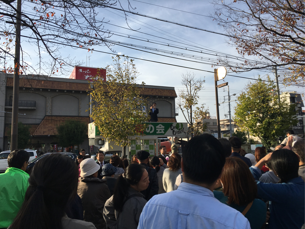 午後は、高本市議と電話かけを行った。3時になったときに、大正区役所前で橋下徹さんの演説があると言うことだったので、みんなして聞きに行った。これがこのときの写真だ。