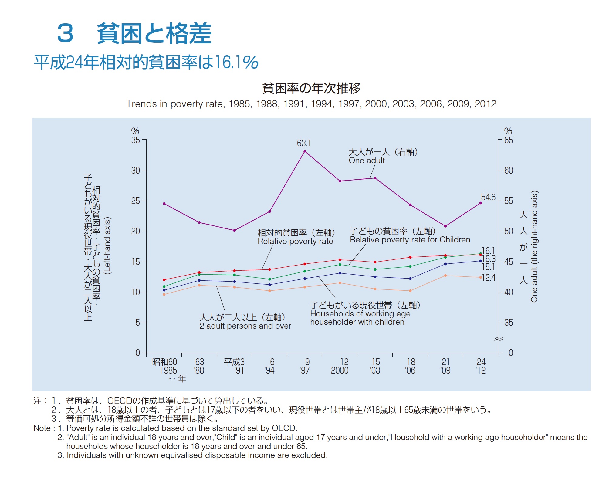 日本の到達点は、子どもの貧困に対して、子どもの貧困なんてないというような議論ができないところにある。「子どもの貧困対策法」と「子供の貧困対策に関する大綱」があり、子どもの相対的貧困やひとり親家庭などの相対的貧困についての政府資料が明らかになっており、貧困線と貧困率について、OECD加盟国共通の算定方法が活用されているので、どんな人が調べても、これらの数値と論理にアクセスできるようになっている。今回の質問は、この到達点の上に立って、議論を進めることになる。