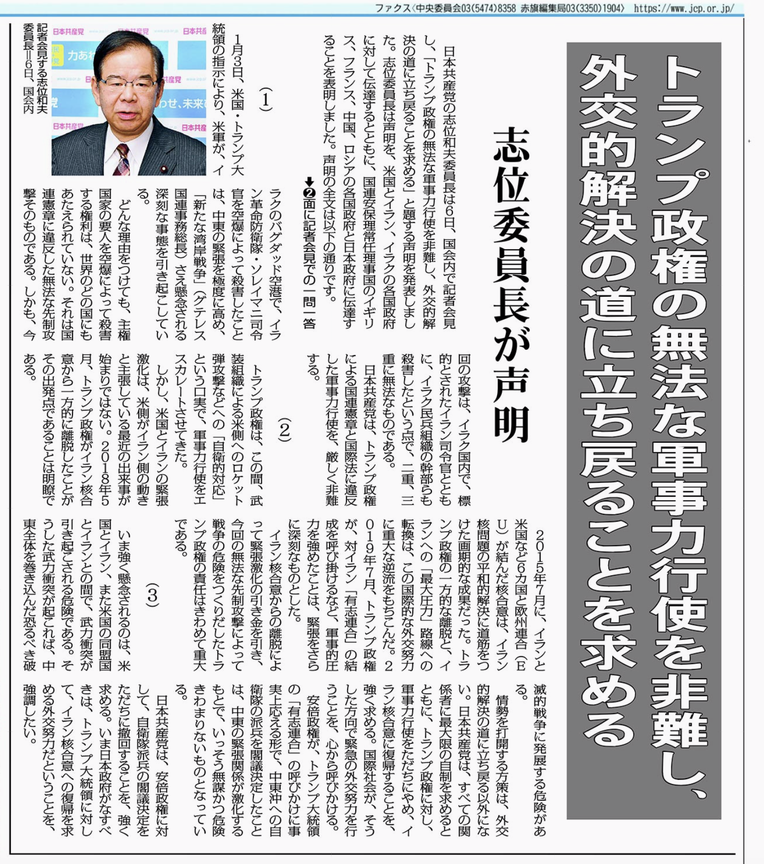 歴史をゆがめる最大の目的は、日本国憲法の改正にあります。国民主権と基本的人権、恒久平和、この三原則は、日本の歴史と伝統には合わない、これを変えなければならないという政治勢力が台頭しています。こういう状況のもとで、政治家がどのような歴史認識を持つのか、これは極めて大切な今日的課題になっています。こういう認識のもとで具体的に質問をいたします。