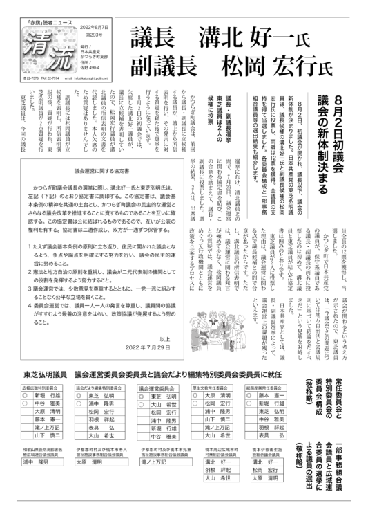 赤旗読者ニュース「清流」を作成した。「清流」はほぼ4年ぶりの発行となった。自分の活動を議員活動を中心に組み立て直す一環として、「かつらぎ民報」と読者ニュース「清流」を発行することにしたい。