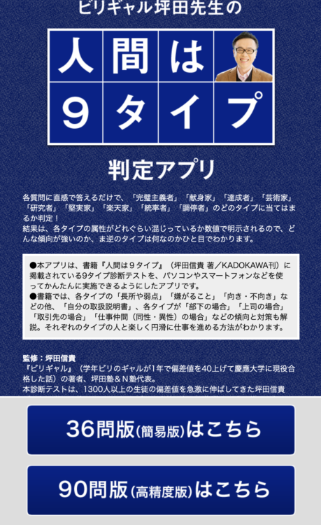 ビリギャル坪田先生の人間は9タイプ判定アプリ