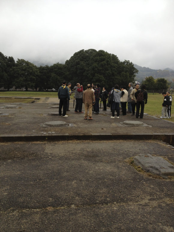 佐野廃寺のルーツをたどる意味が込められている、佐野住民会館の「歩け歩け」の1日バスツアーに参加した。朝8時20分過ぎに会館前を出発したバスは、まず明日香村の川原寺に到着した。この川原寺は、佐野廃寺と同じ頃に建てられたお寺であり、建物の作りも佐野廃寺と似ているものだ。