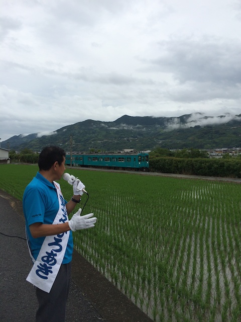 午前中四郷の広口に初めて街宣に行った。街頭に出てきてくれて演説を聞いていただいた。移動距離が長かったので午前中の街宣は13回だった。午後は21回街頭演説をすることができた。