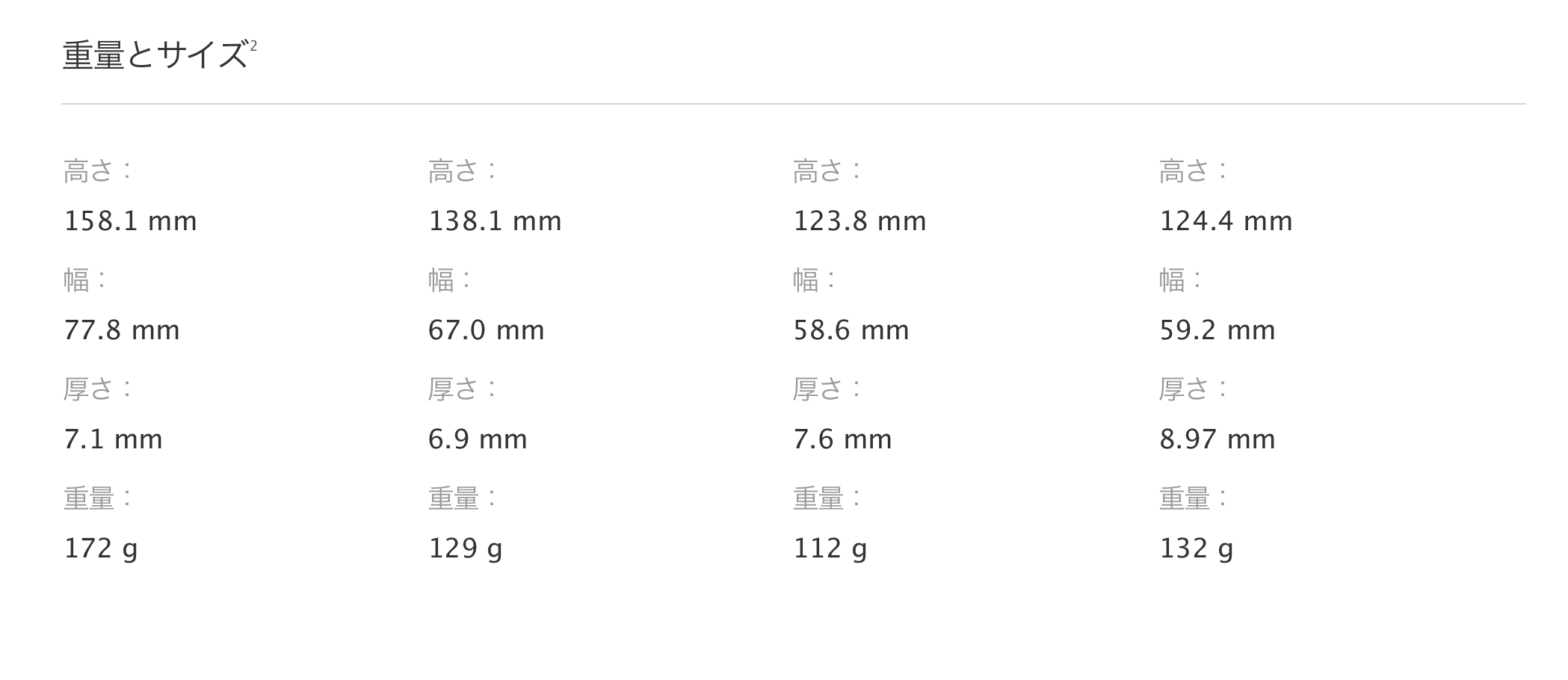 サイズの比較
