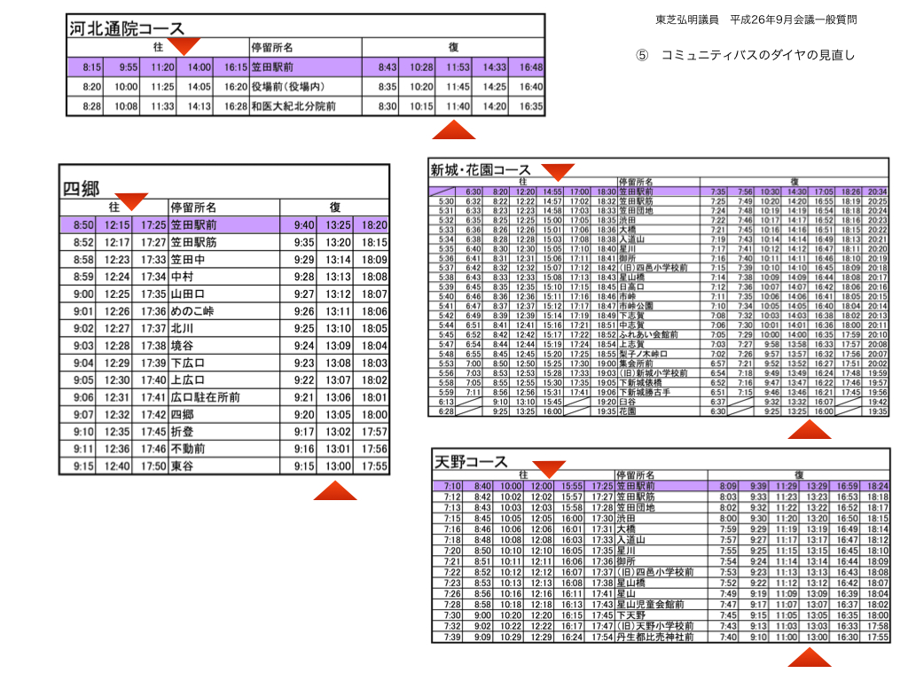 傍聴者にお配りする資料を紹介します。かつらぎ町議会は、分かりやすい一般質問を実現するために、傍聴人と当局、他の議員に議員が作成した資料を配付できるようになっています。ぼくは、最近、keynoteというプレゼン用のソフトで資料を作成しています。